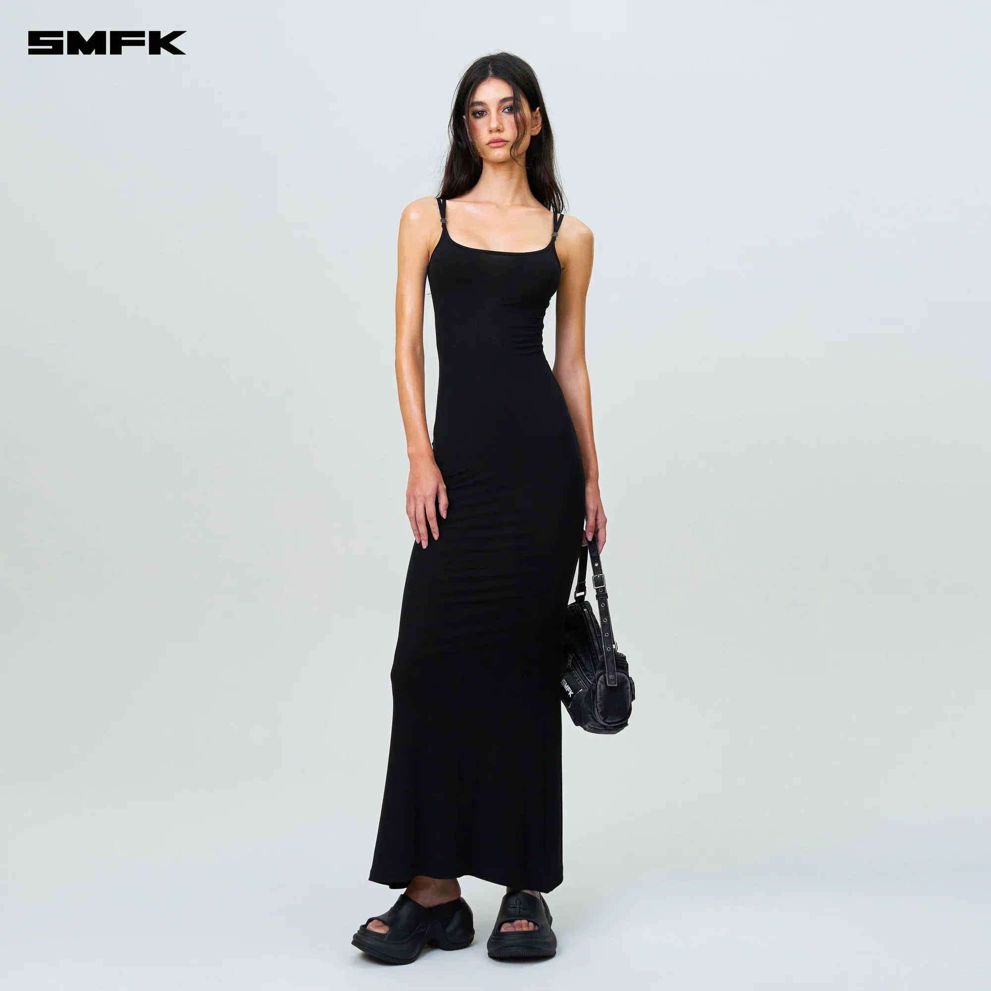 COMPASS HUG SLIM FIT LONG DRESS BLACK