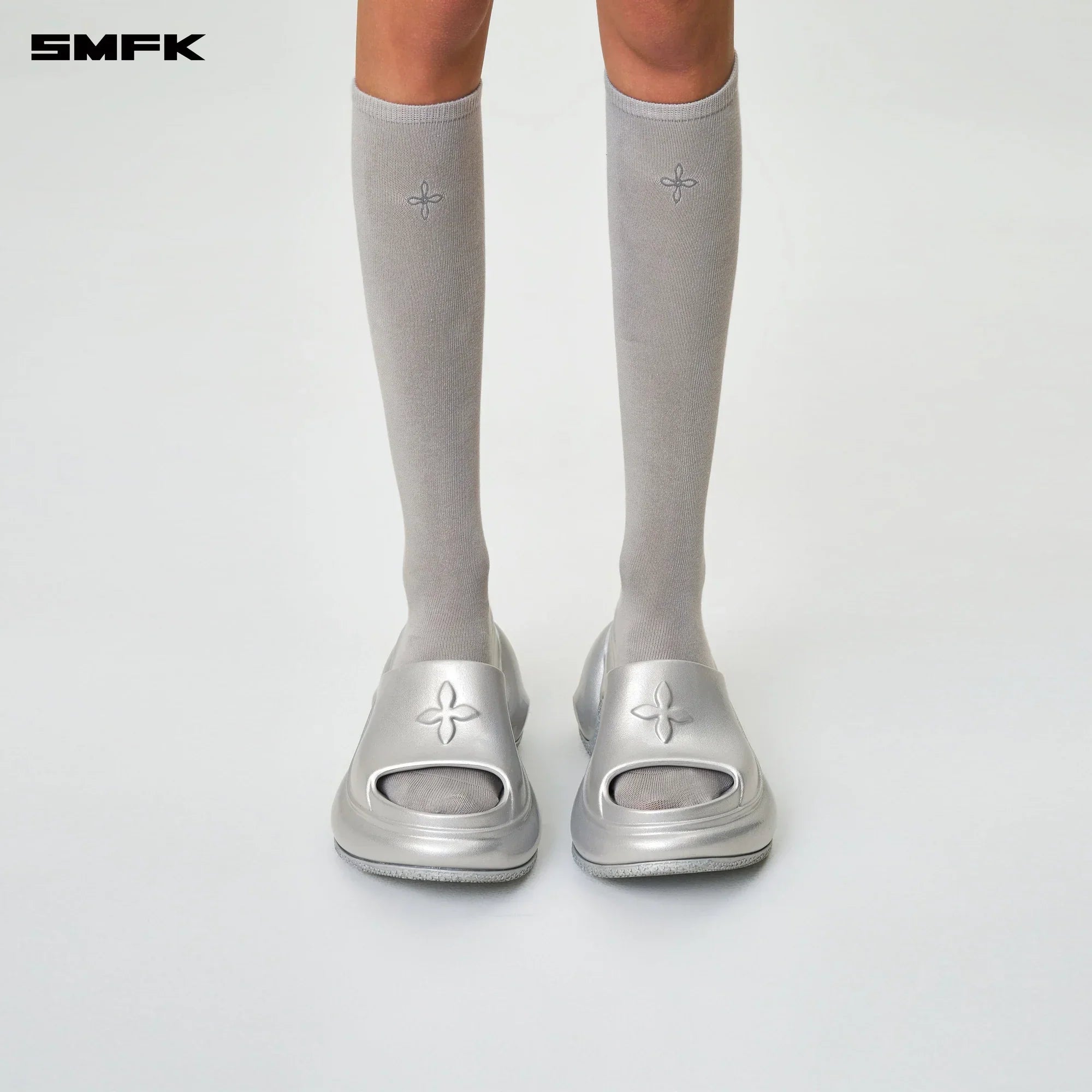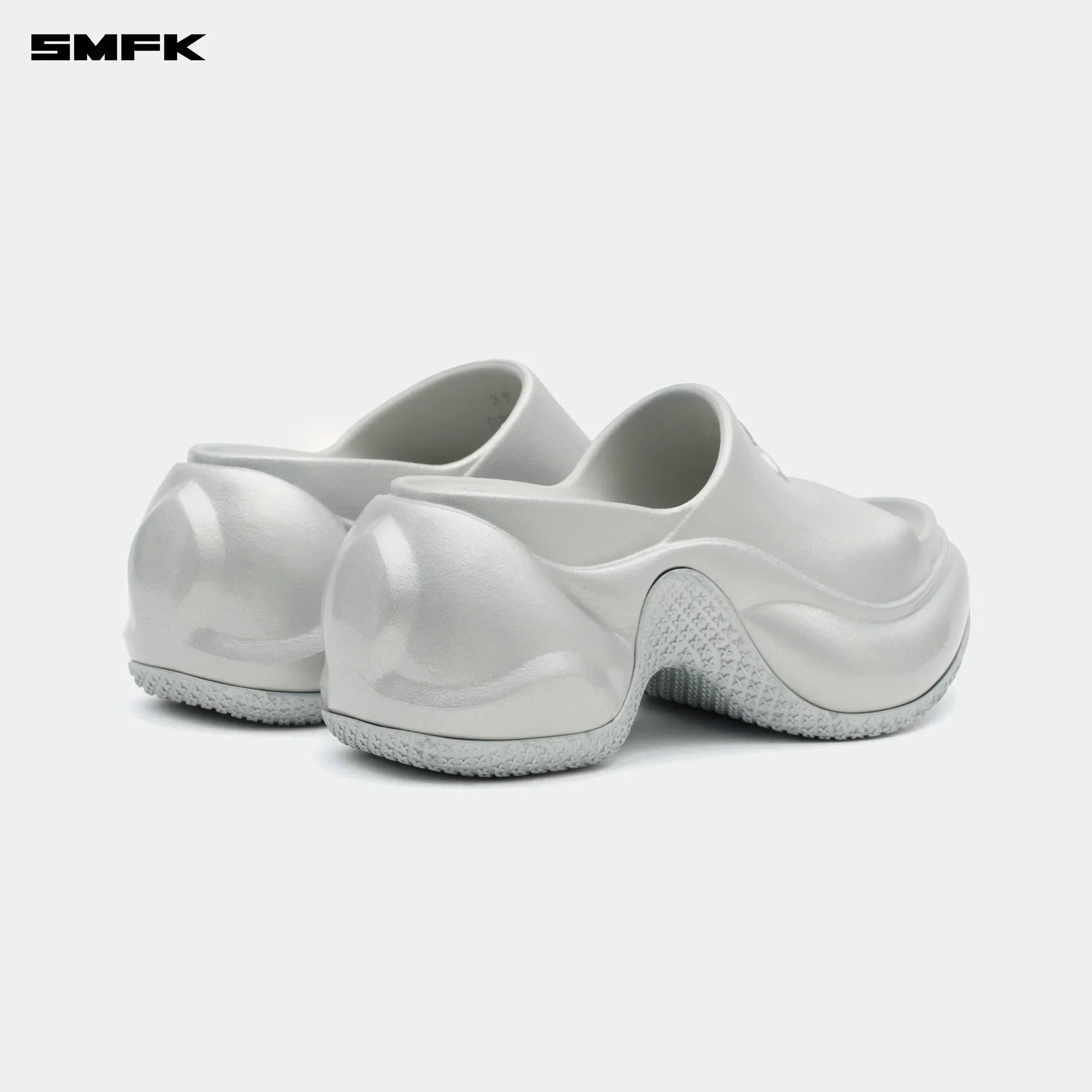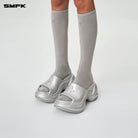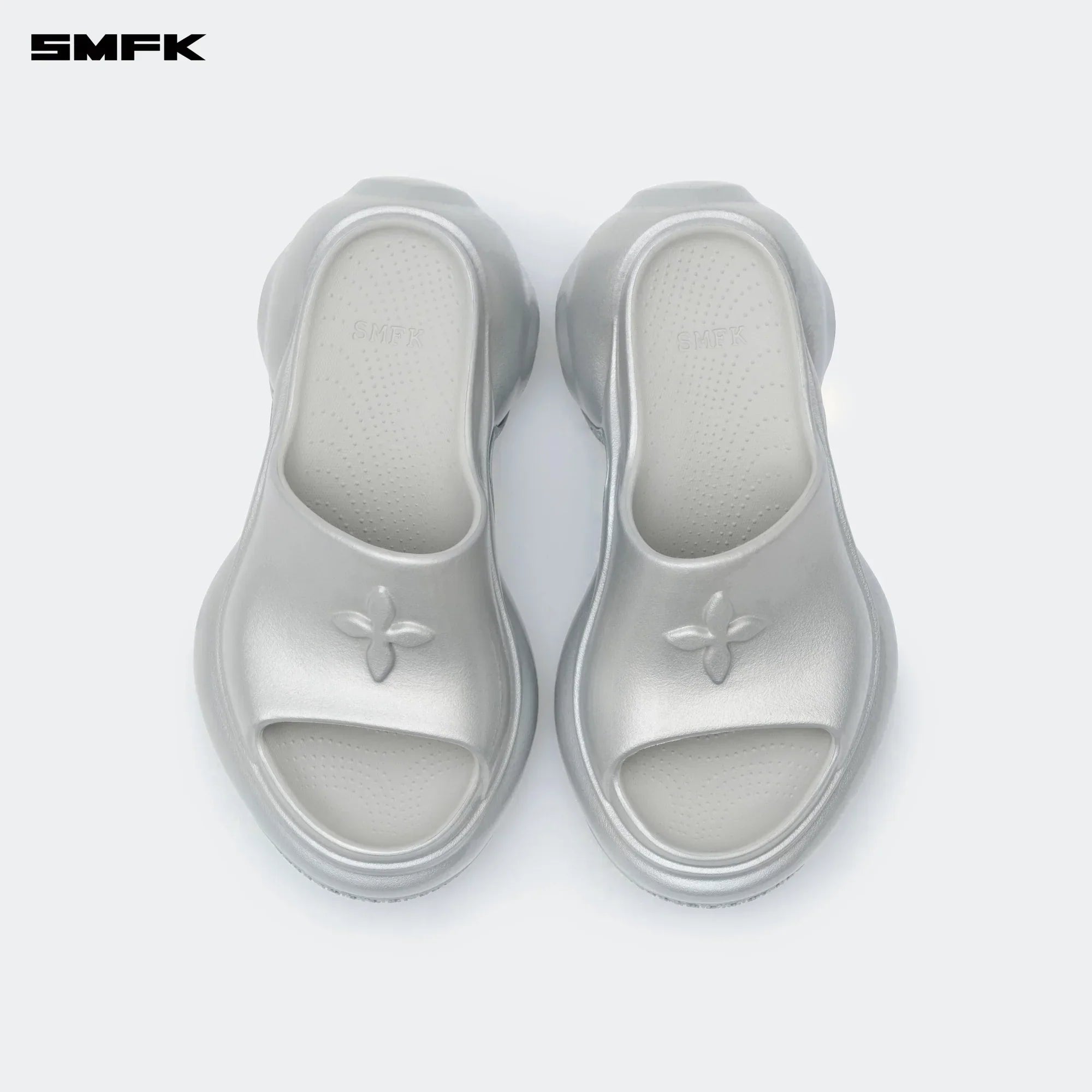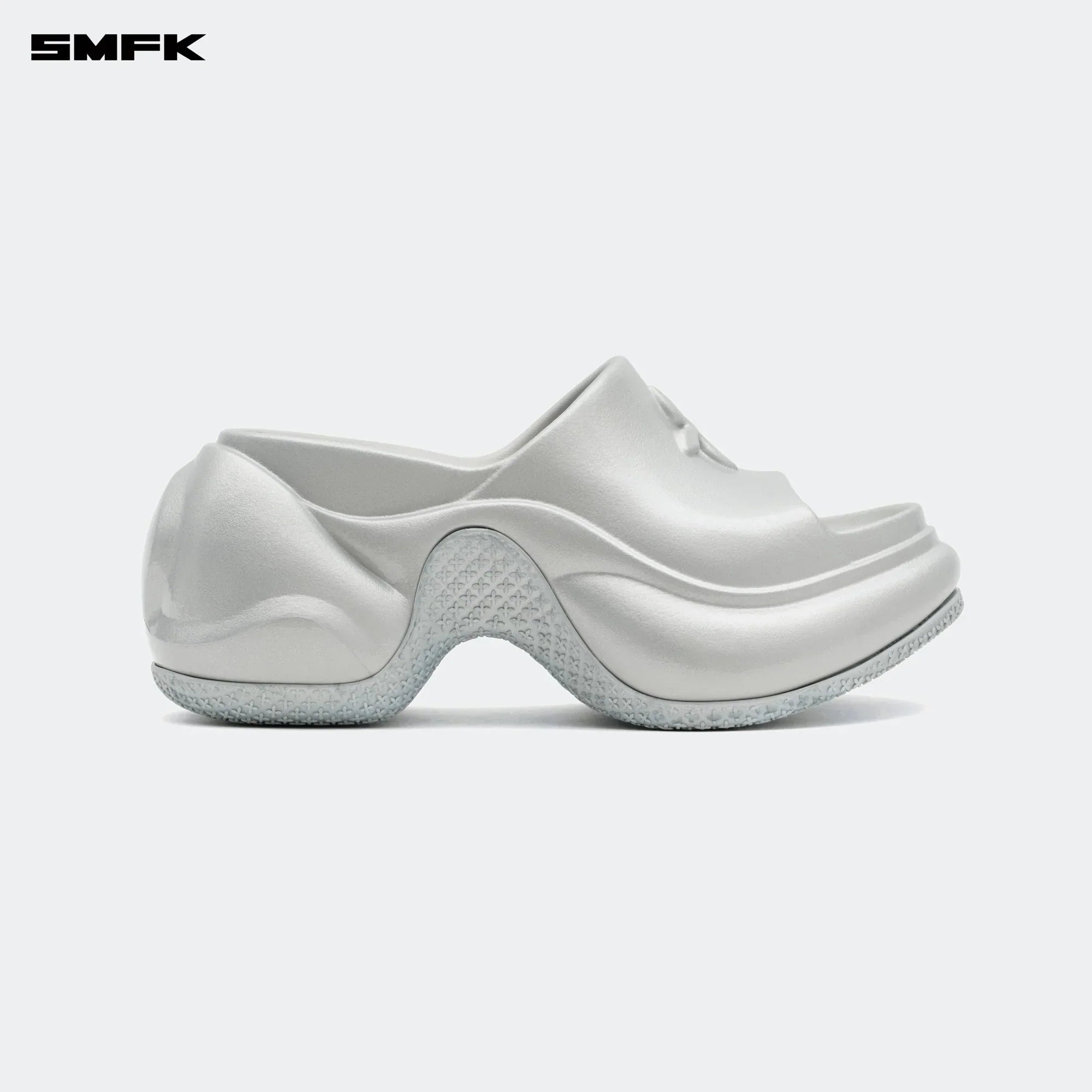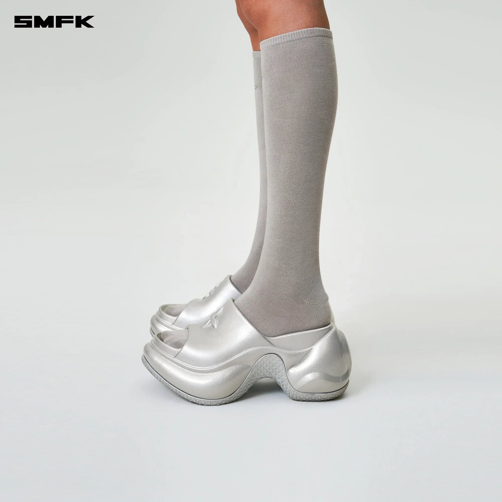 COMPASS WAVE HIGH-HEEL BUMPER SANDALS IN SILVER