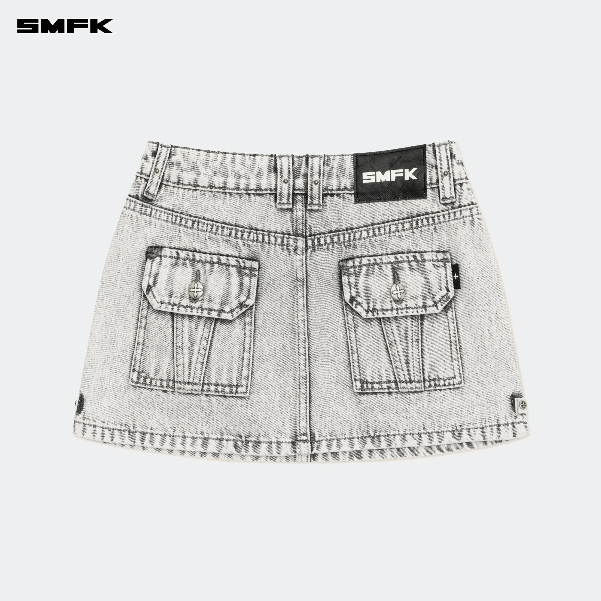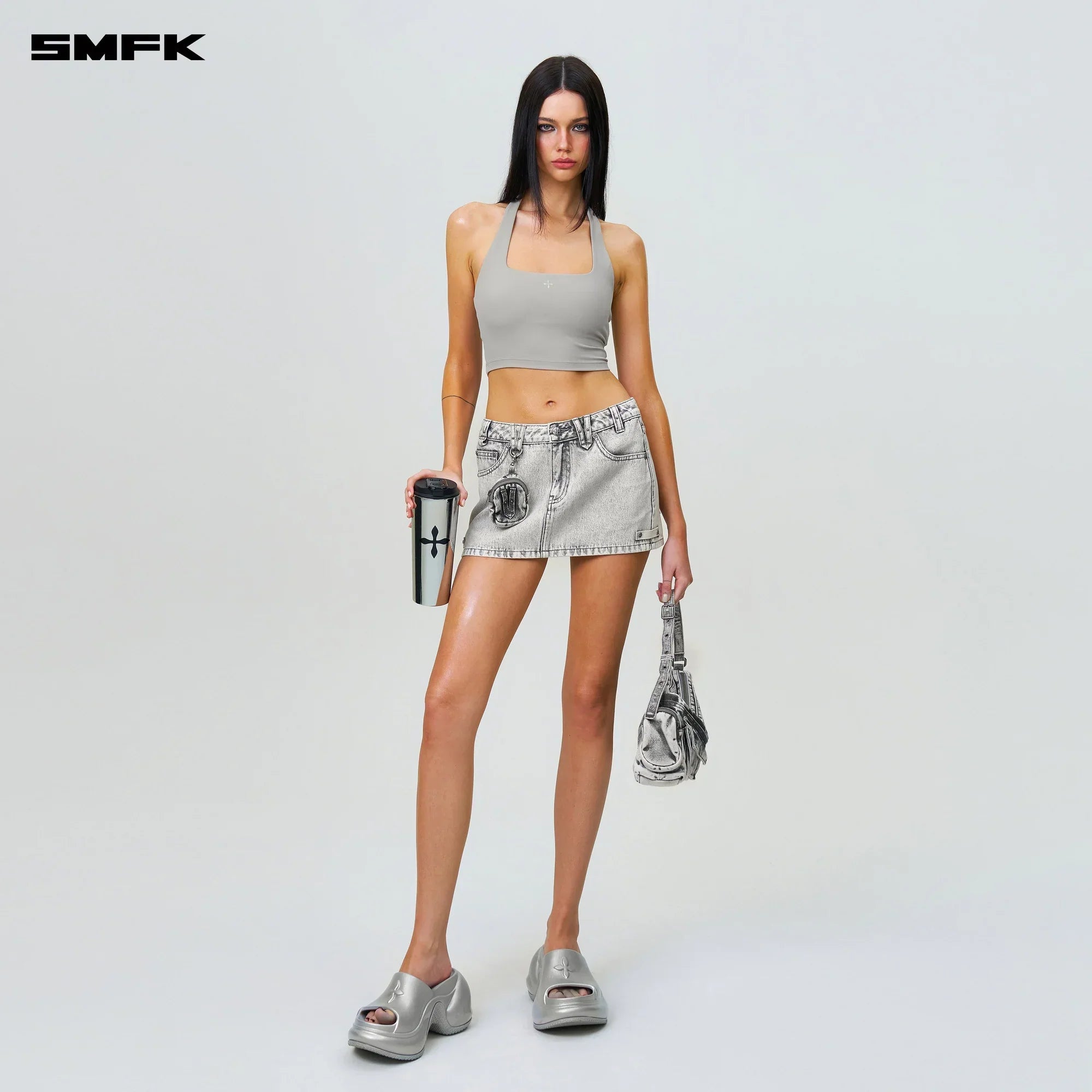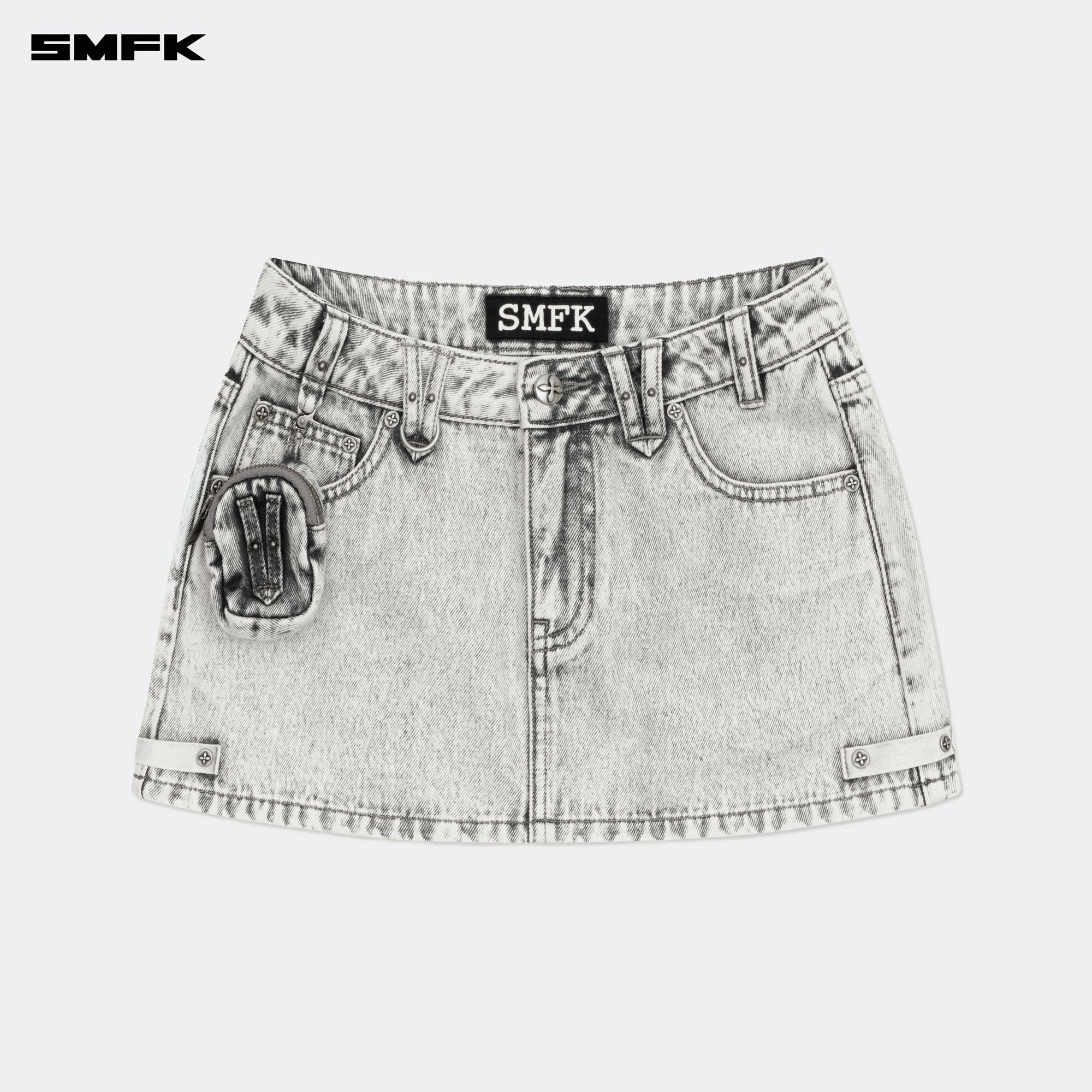 COMPASS WILD TARPAN DENIM MINI SKIRT GRAY
