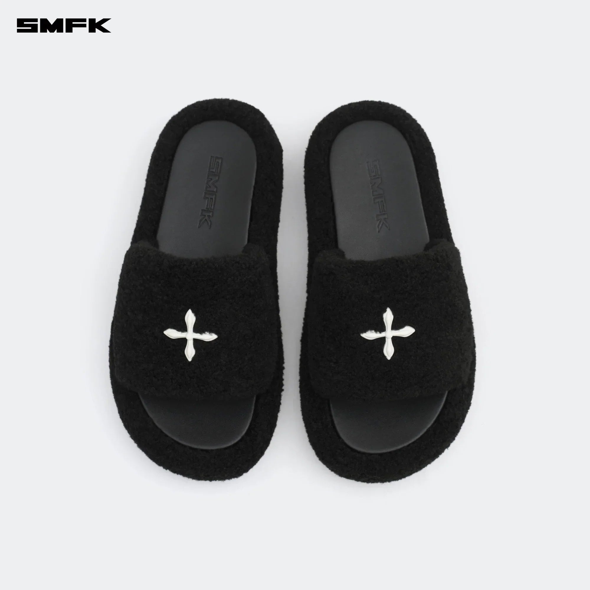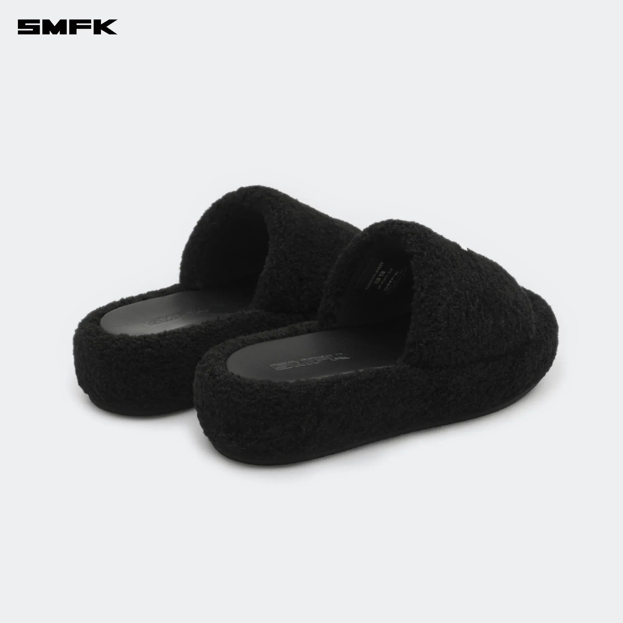 COMPASS WOOLLY CLASSIC FURRY SLIPPER IN BLACK