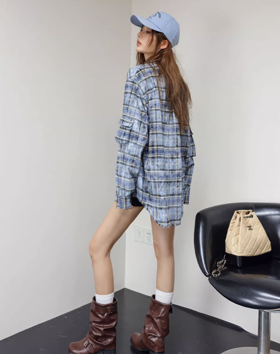 SOMESOWE PLAID LONG-SLEEVED VINTAGE SHIRT