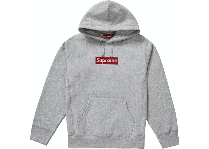 SUPREME SWAROVSKI BOX LOGO HOODED SWEATSHIRT HEATHER GREY
