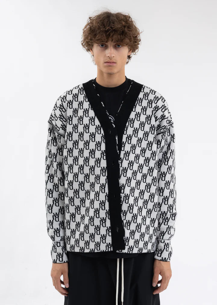 WE11DONE BLACK WD1 GRAPHIC KNIT CARDIGAN