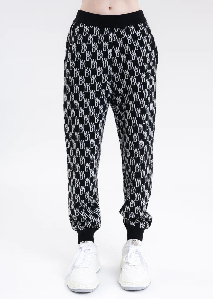 WE11DONE BLACK WOOL KNIT LOGO LOUNGE PANTS